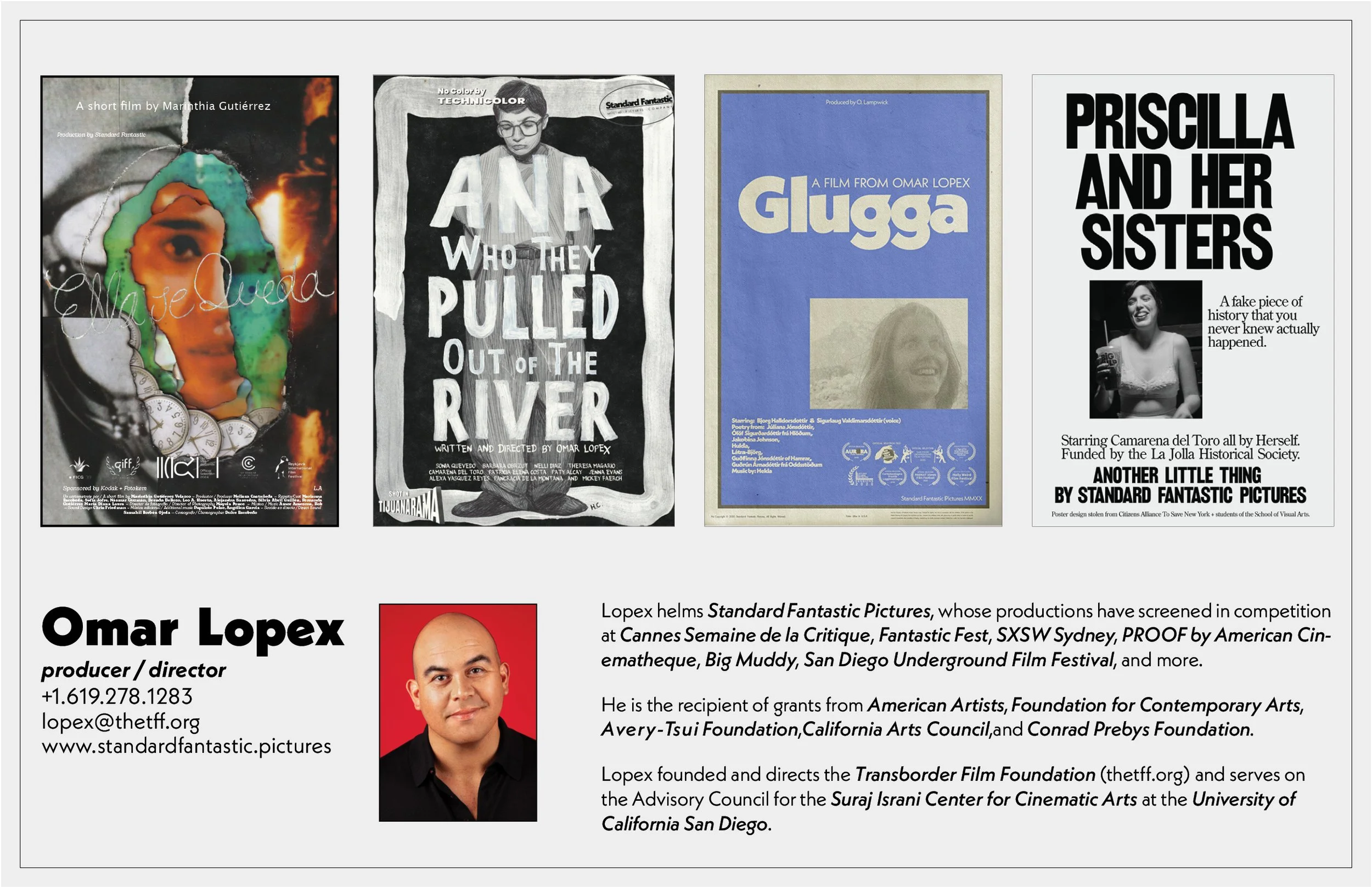Lopex helms StandardFantastic Pictures, whose productions have screened in competition at Cannes Semaine de la Critique, Fantastic Fest, SXSW Sydney, PROOF by American Cinematheque, Big Muddy, San Diego Underground Film Festival, and more.