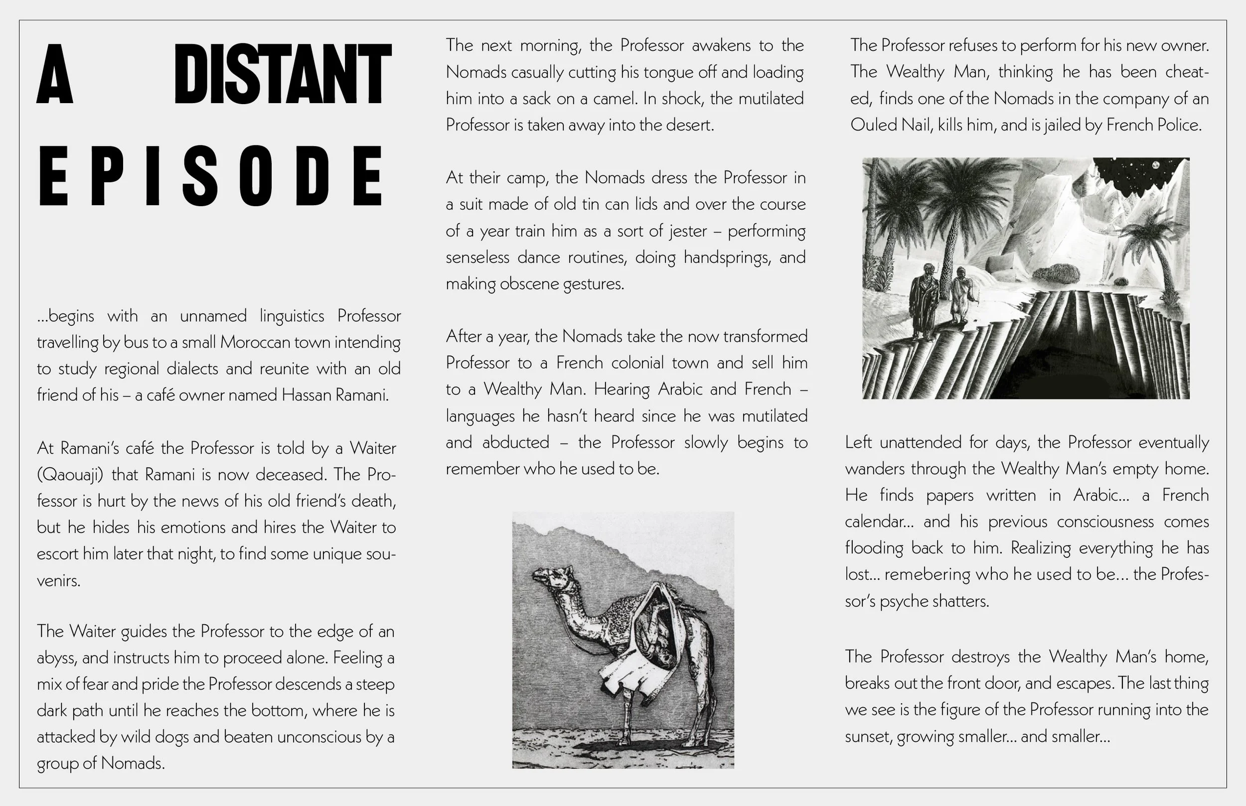 A 35mm movie adaptation of the Paul Bowles masterpiece A Distant Episode.